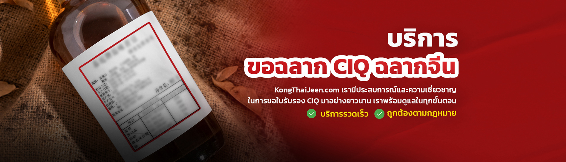 Kongthaijeen มีประสบการณ์และความเชี่ยวชาญในการขอใบรับรอง CIQ มาอย่างยาวนาน เราพร้อมรับผิดชอบในทุกขั้นตอน ตั้งแต่การจัดเตรียมเอกสารประกอบการยื่นขอ การประสานงานกับหน่วยงาน CIQ ไปจนถึงการจัดทำฉลาก CIQ ให้ถูกต้องตามกฎระเบียบ